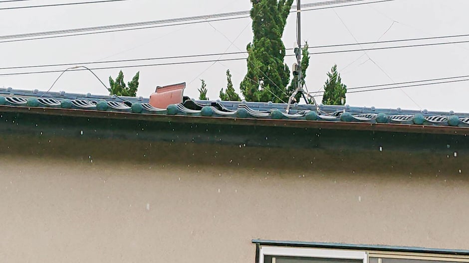 なんと、昨年の台風で 瓦がめくれてました(涙