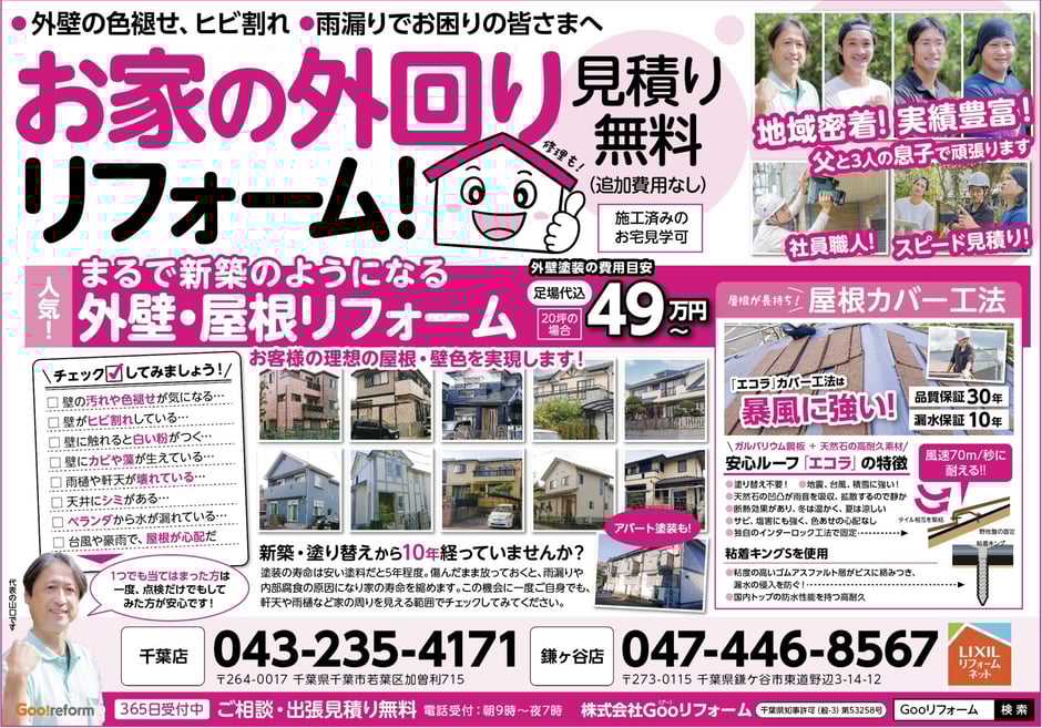 弊社チラシ · 2022/09/08 最新チラシ-2022/09/08- 最新チラシできました! 台風の季節です。お家のお外回り再点検いたします!現場調査・お見積無料!迅速対応いたします。お困りごとはお気軽にご相談ください! <<<お問い合わせはコチラ tagPlaceholderカテゴリ: お知らせ
