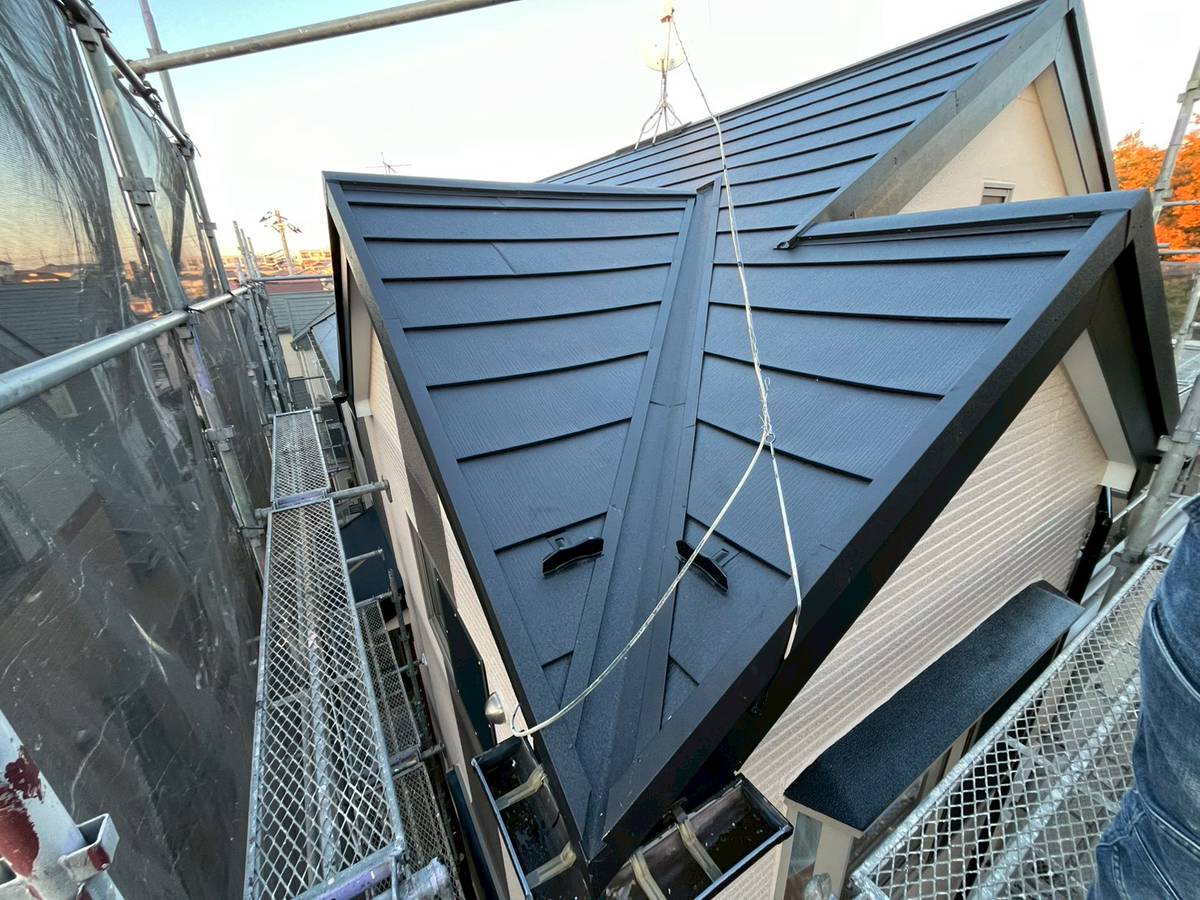 こんにちは!鎌ヶ谷市・千葉市にありますお家まるごとリフォームの会社GOOリフォームです。船橋市新高根の築18年の邸宅にて外壁の汚れがあるため屋根と外壁の塗装工事を施工しました。スレート屋根の割れや脱落があり将来的に耐久性のあるカバー工法をおすすめいたしました。屋根はブラック、外壁はSR-104とアクセントにSR-414を使用しました。無事完工し大変喜んでいただけました。今回工事中お客様とお仕事の都合でなかなかお会いできなかったのが心残りでした(> <)工事中は職人とできるだけお話をされることをおすすめします(^^)/