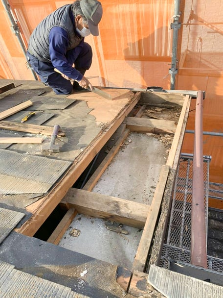 今回は野地板からの葺き替えになりました。