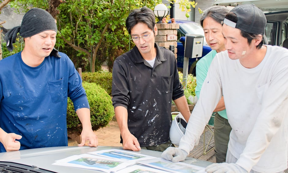 外壁塗装など施工前に入居様へのご挨拶はもちろん、施工中も入居様が快適に過ごせるよう、最大限に気遣いして参ります。
